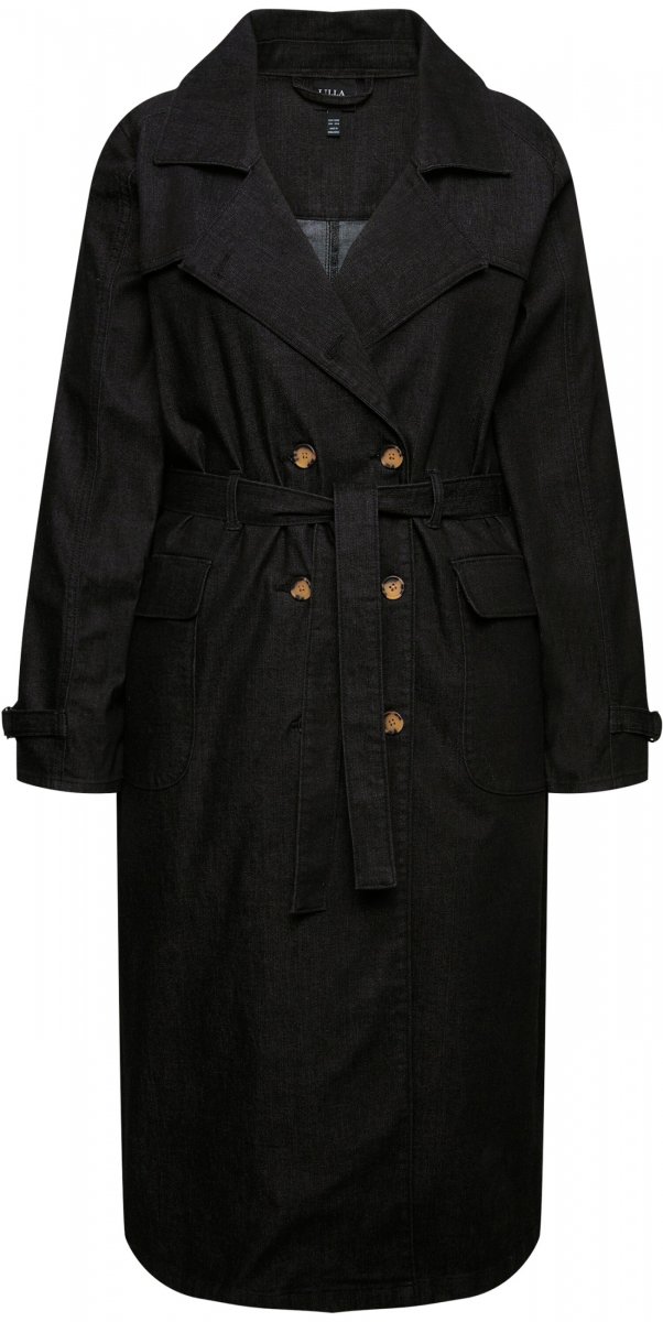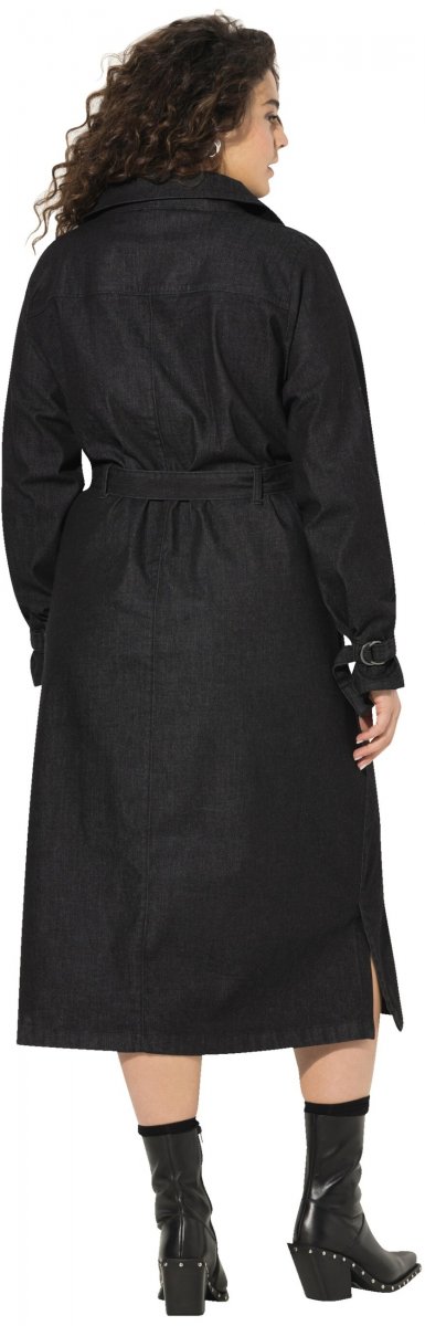 Ulla Popken Denim Acid Wash Trench Coat Black