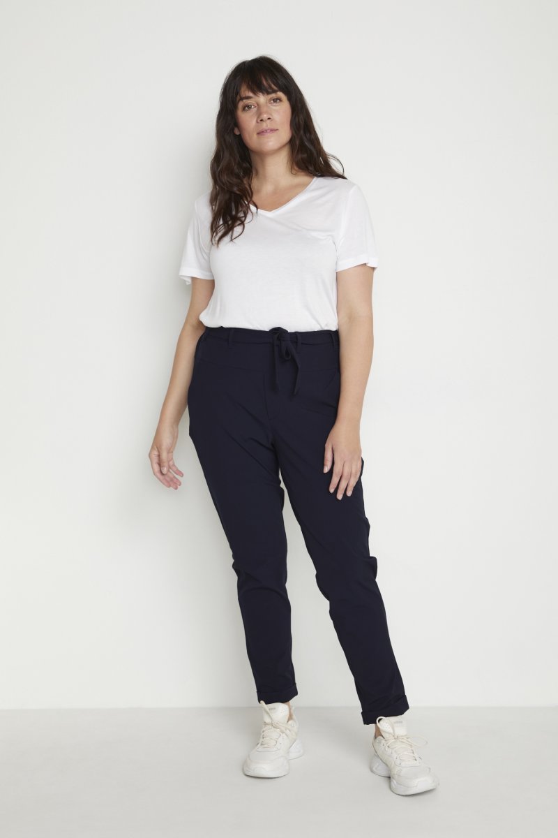 KalhotyDostupné ve velikostech 42–56Od značky Kaffe CurveVyrobeno z 68% polyesteru, 28% viskózy a 4% elastanuKlasický střihNámořnická modrá barvaKliknutím sem zobrazíte průvodce velikostí
