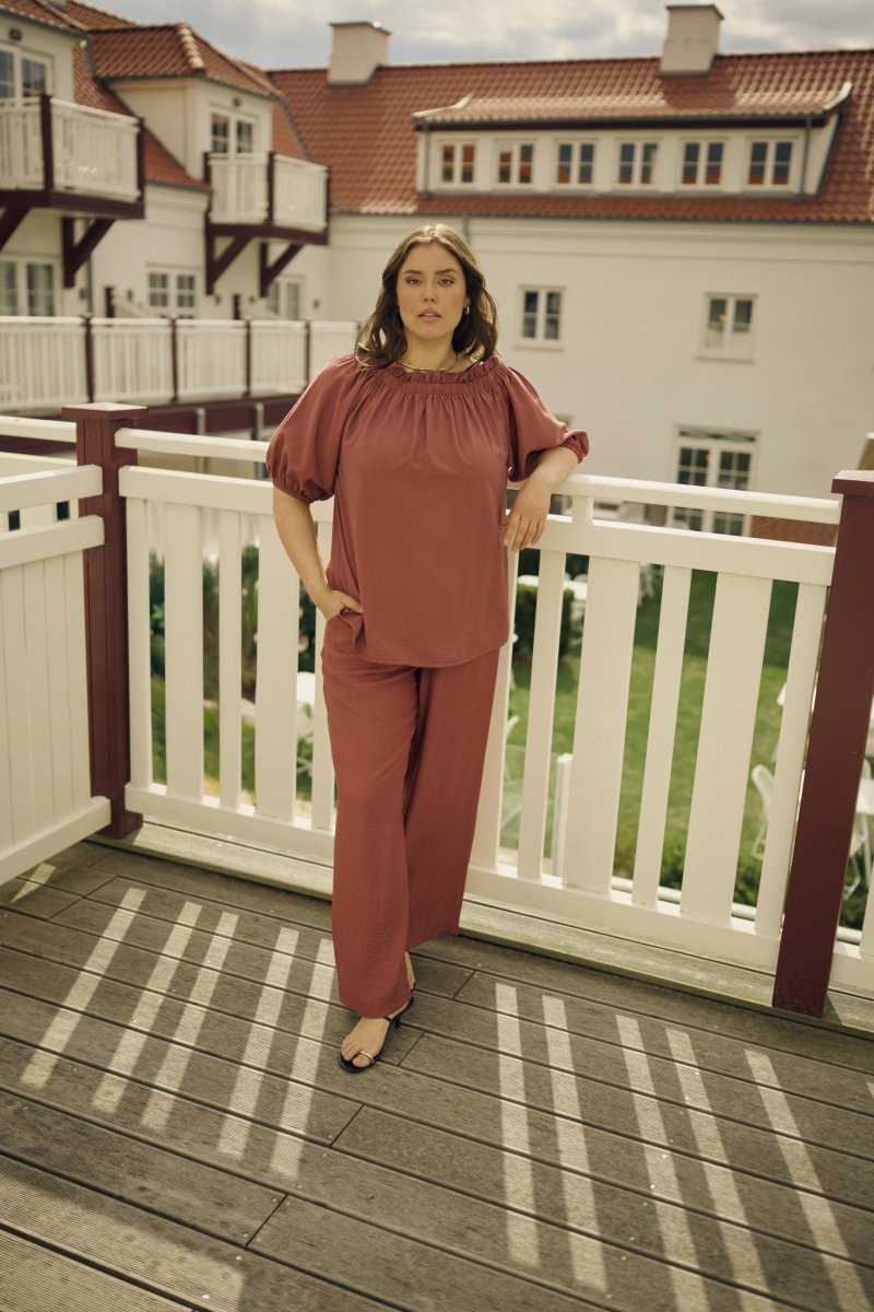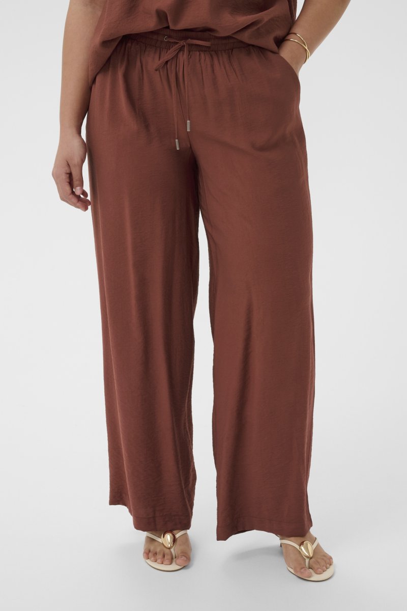 KalhotyK dispozici ve velikostech 42–54Od značky Kaffe CurveMateriál: 85 % viskóza, 15 % polyamidVolný střihHnědá barvaKliknutím sem zobrazíte průvodce velikostí