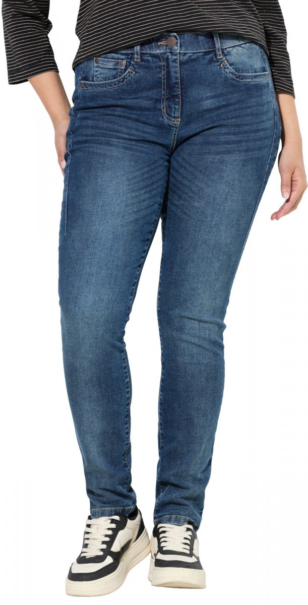 Ulla Popken Decorative Stitched Slim Leg Stretch Fit Jeans Blue Denim