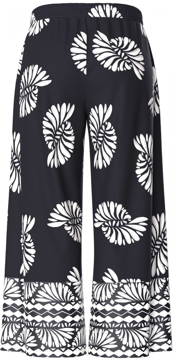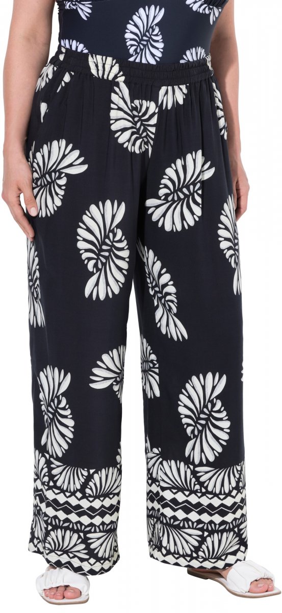 Ulla Popken Fossil Print Elastic Waist Palazzo Pants Black