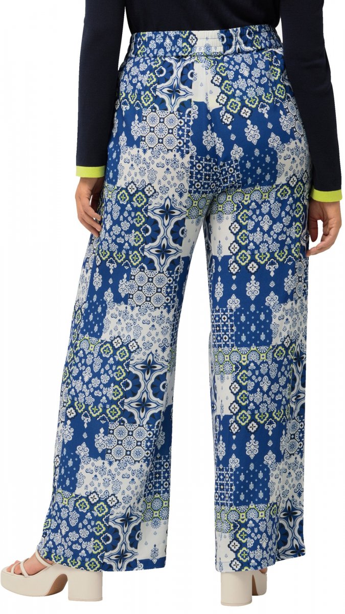 Ulla Popken Paisley Straight Leg Pull On Pants Blue