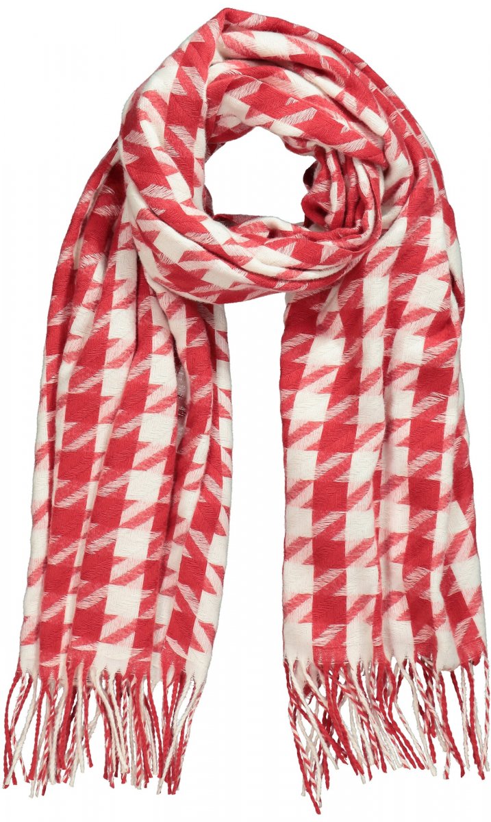 Ulla Popken Houndstooth Fringed Hem Scarf Salsa