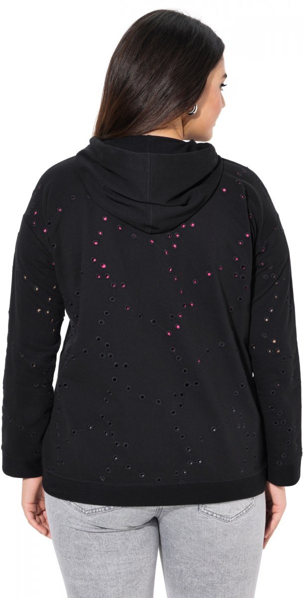 Průvodce velikostí - Ulla Popken Eyelet Embroidered Zip-Up Hoodie Black