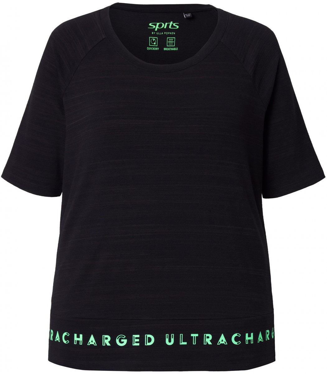 Ulla Popken Classic Fit Half-Sleeve Crew Neck T-shirt With Hem Inscription Black