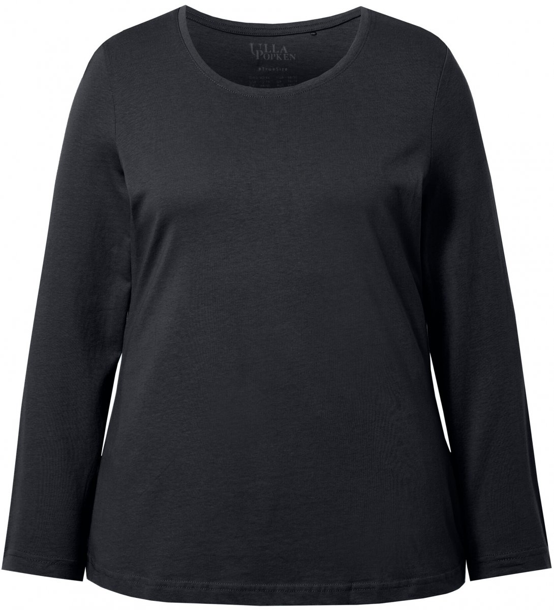 Ulla Popken Basic Round Neck Long Sleeve Slim Fit Cotton Tee Black