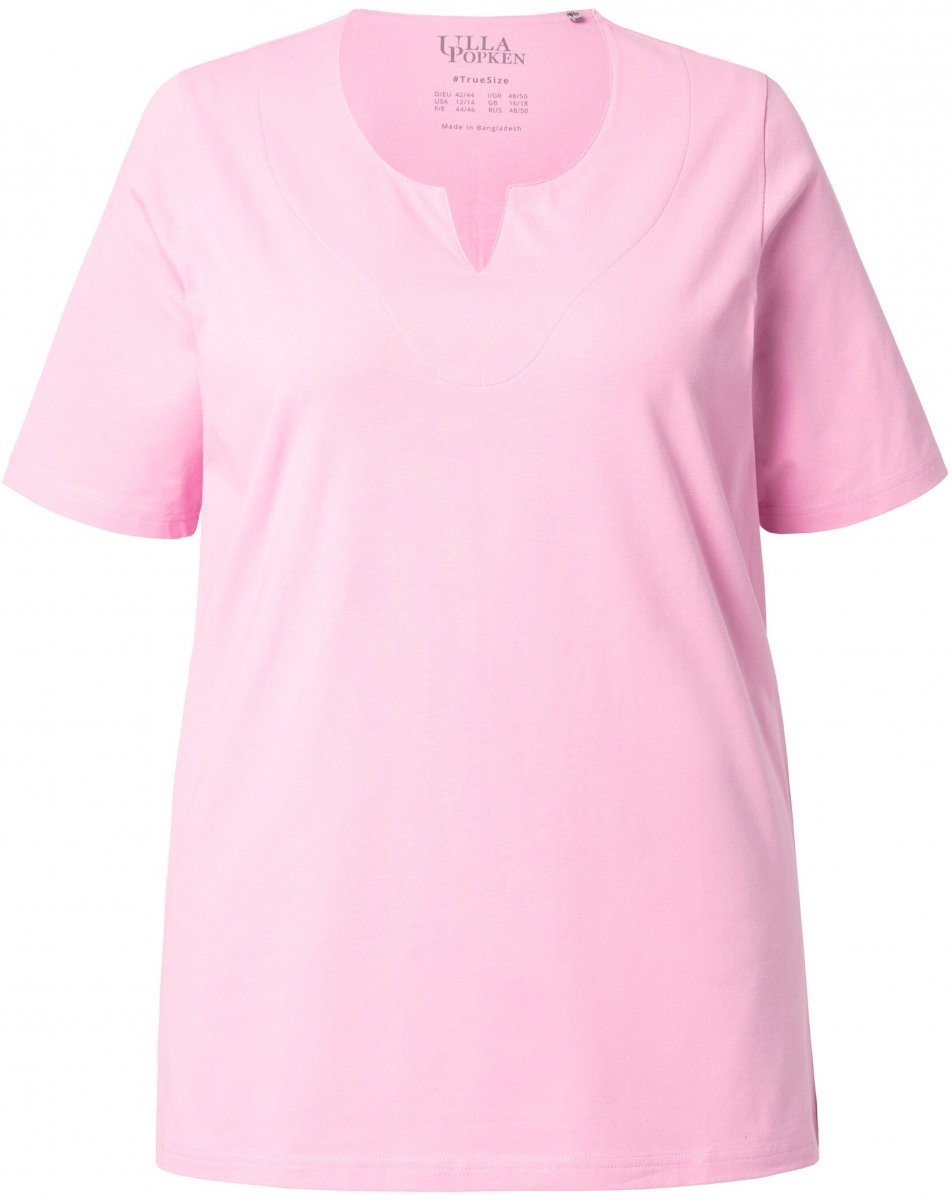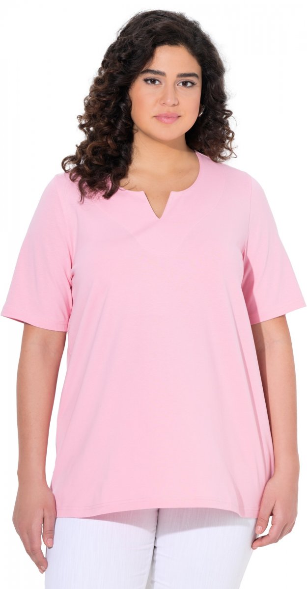 Ulla Popken Essential Notch Neck Stretch Tee Pink