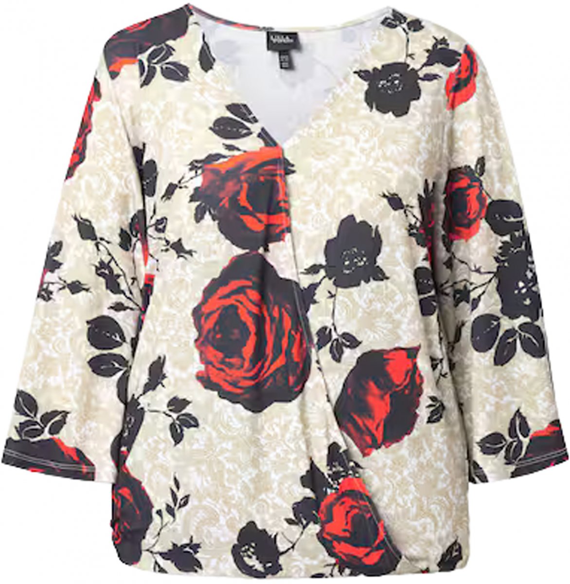Průvodce velikostí - Ulla Popken Rose Print Faux Wrap Top Off-White