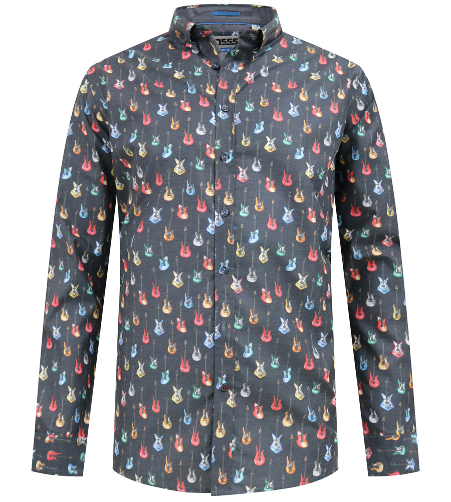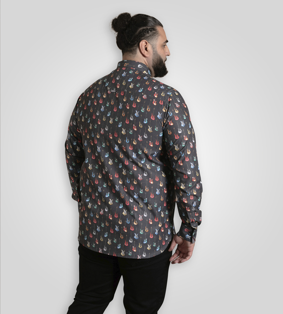 Průvodce velikostí - D555 Wakefield Long Sleeve AOP Guitar Printed Shirt Grey