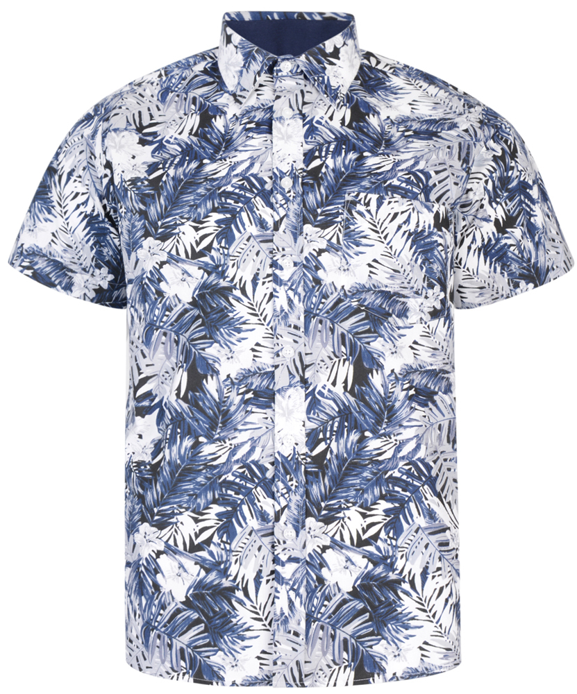 Kam Jeans 6331 AOP Leaf Print Short Sleeve Shirt Navy