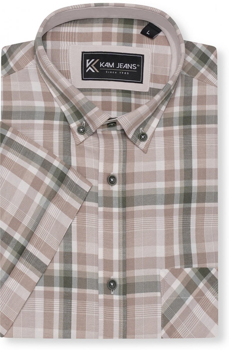 Průvodce velikostí - Kam Jeans 6339 Checked Short Sleeve Shirt Beige