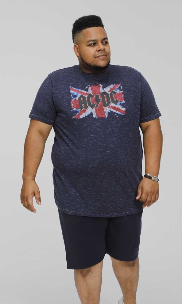 Průvodce velikostí - D555 DENNIS Official AC/DC Printed Crew Neck T-Shirt Navy Reno