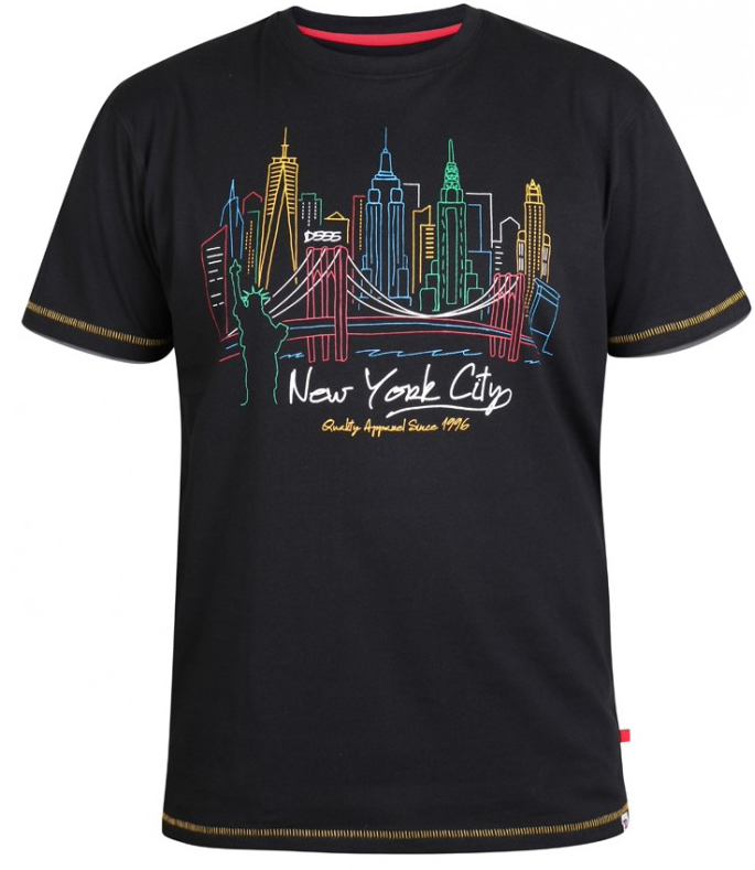Tričko ve velkých velikostechNakupte u nás ve velikostech 2XL-8XLTrendy značka D555Vyrobeno z 100% bavlny Černá barvaPerte na 30°Sezónní produkt - velikosti nejsou doplňoványKliknutím sem zobrazíte průvodce velikostí