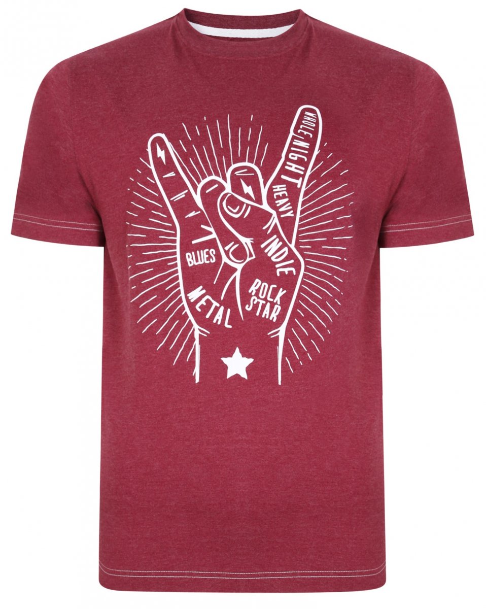 Průvodce velikostí - Kam Jeans 5390 Rock Star Print T-Shirt Burgundy